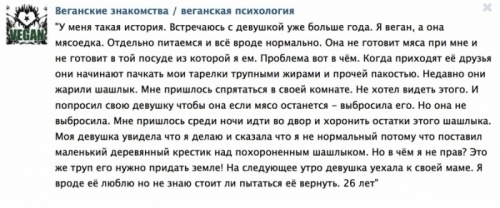Сам я неисправимый мясоед. Тема эта волнует меня только потому, что многие люди начинают вести *здоровый* образ жизни начитавшись журналов с розовыми обложками, где *научно* все доказано.